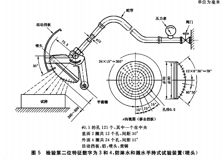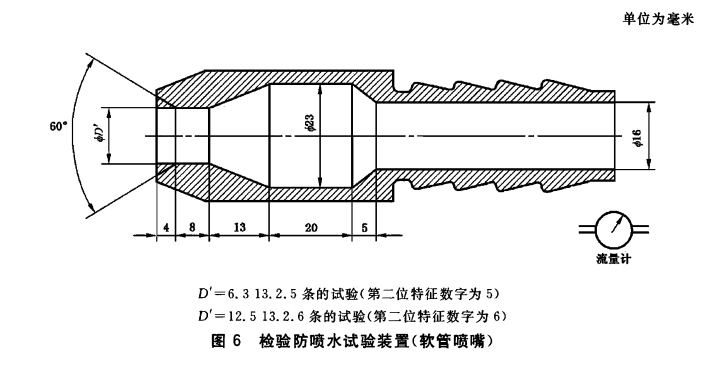 用圖6 所示標準試驗噴嘴在所有可能的方向向被試外殼噴水。