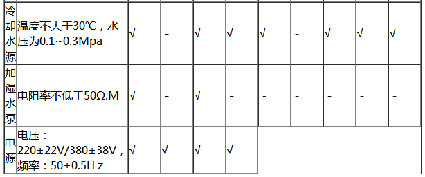 H)冷卻水源:水溫不大于30℃,水壓控制在0.1~0.3Mpa